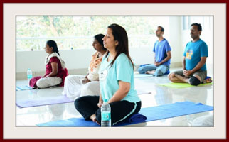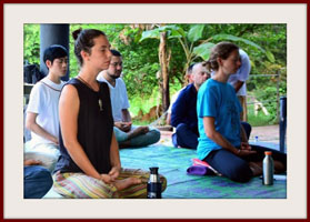 In der Pranayamapraxis und Meditationspraxis von Babaji’s Kriya Yoga finden alle wesentlichen Vorgänge innerlich statt und sind mit keinem Video abbildbar. Im Gruppenraum sitzen die Teilnehmenden im Kreis oder in Reihe je nach Örtlichkeit.