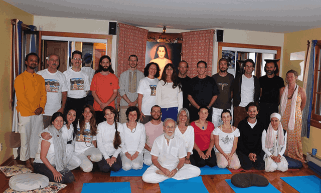Durga Ahlund, M. G. Satchidananda and participants in the Kriya Hatha Yoga Teacher Training, Quebec Ashram September 1, 2014